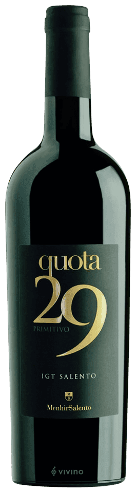 Named for the vineyard's altitude of 29 meters above sea level, this pure Primitivo displays ruby-red with intense violet reflections. Aromas of black cherry, ripe plum, dark chocolate and black pepper. Warm, round and structured with a perfectly balanced tannic texture and long finish with liquorice notes. Pairs beautifully with grilled meats, game dishes and mature cheeses.